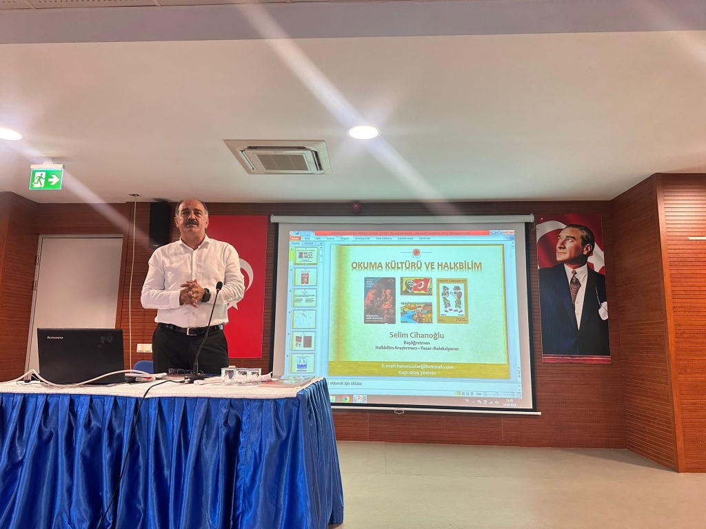 Ardından söz alan Selim CİHANOĞLU, kendi kaleme aldığı kitaplar üzerinden örnekler vererek okur-yazar olmanın bireysel ve toplumsal önemini vurguladı. Halk biliminin kültürümüzdeki yeri ve sözlü-yazılı mirasın aktarımındaki rolünü içten bir üslupla paylaştı. Katılımcılar, hem yazarın aktardığı deneyimlerden hem de kendi okuma kültürlerine dair yaptıkları paylaşımlardan ilham aldı.